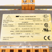 Italweber OMC0640801028 0-600V Primary 0/220V Sec. 1400VA 1Ph Transformer