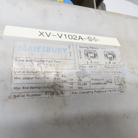 Jamsbury VPVL450 SR6 B HTC 1" Pneumatic Valve Actuator 116PSI W/Position Monitor