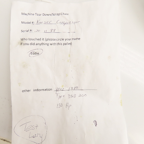 - Removed from a Kaeser DSB 200 Rotary Screw Compressor