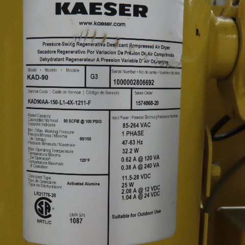 Kaeser KAD-90 Regenerative Desiccant Dryer 115V 1Ph 90SCFM @ 100PSI