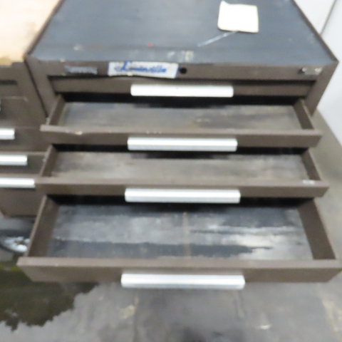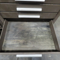 - Multi-drawer storage configuration with two separate cabinet sections