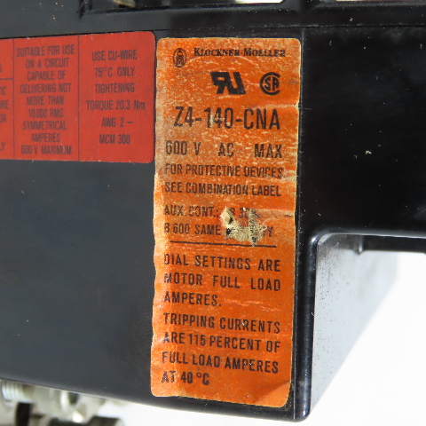 Klockner-Moeller DIL 4-22-NA 100HP Magnetic Contactor W/Z4-140-CAN Overload 600V