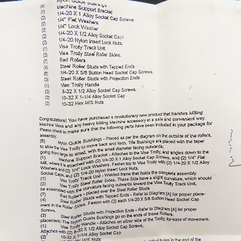 Knee Mill Vise Trolley Roller Assembly Support Bracket & Hardware