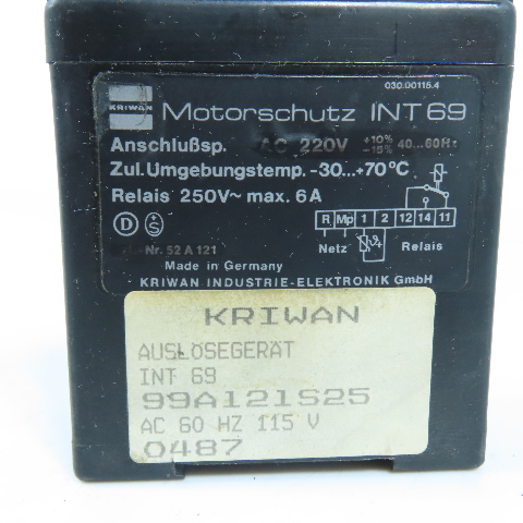 Kriwan 99A121S25 INT69 030.00115.4 Motor Protection Unit 115V 60Hz