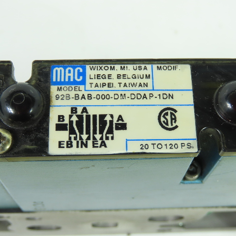 MAC 92B-BAB-000-DM-DDAP-1DN 5/2 Way Solenoid Valve W/ Manifold 24VDC 120PSI