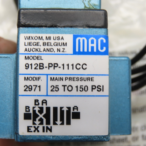 MAC PPE-111CCAA 912B-PP-111CC Solenoid Valve 120/110V 150 PSI 1/4" NPT