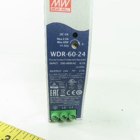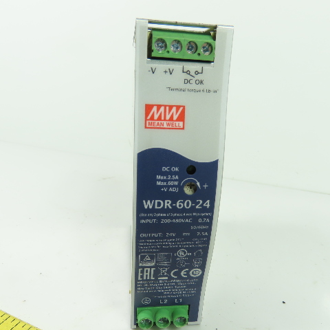 Mean Well WDR-60-24 Power Supply 200-480VAC 0.7A Input 24VDC Output