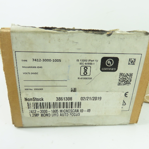 Microscan 7412-3000-1005 ID-40 MicroHAWK Barcode Reader 1.2MP Mono UHD 24VDC