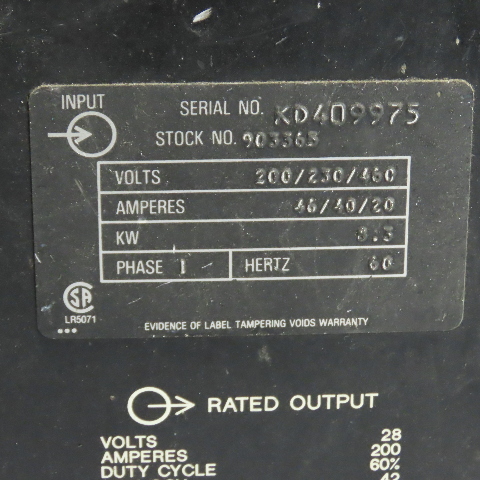 Miller 903363 Regency 250 CV-DC Welding Power Source 200A 1Ph 200/230/460V