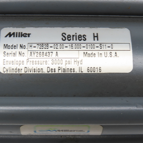 Miller H-72B2B-02.00-16.000-0100-S11-0 Hydraulic Cylinder 2" Bore 16" Stroke