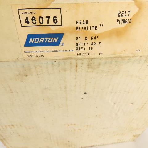 Norton 780727 46076 Metalite Abrasive Belt Plyweld 2" x 54" 40-X Grit Box Of 10