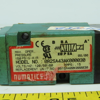 Numatics 082SA43AK000030 Pneumatic Solenoid Control Valve 150PSIG 120V
