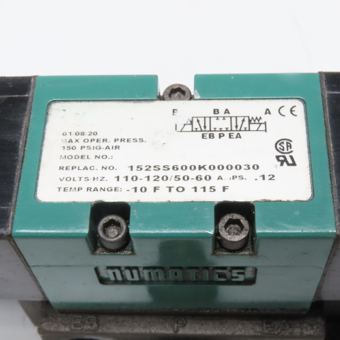 Numatics 152SS600K000030 5/3 Position Closed Center Solenoid Valve 120V