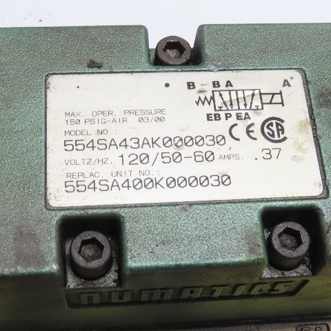 Numatics 554SA43AK000030 Solenoid Valve 150 PSI 120VAC 0.37A with Manifold Base
