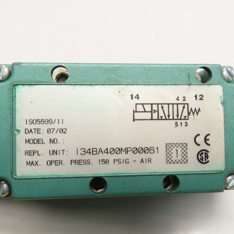 Numatics I34BA400MP00061 ISO 5599/2 Size 1 Solenoid Valve 24VDC 150 PSI