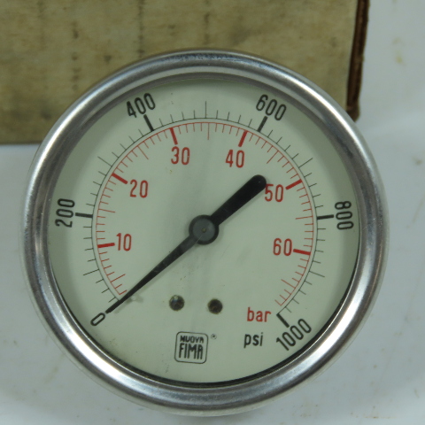 Nuova FIMA 2-1/4" Stainless Pressure Gauge 0-1000PSI 0-68.9 Bar