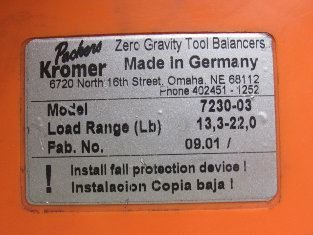 Packer Kromer 7230-03 Zero Gravity Tool Balancer 13.3-22 Lbs.