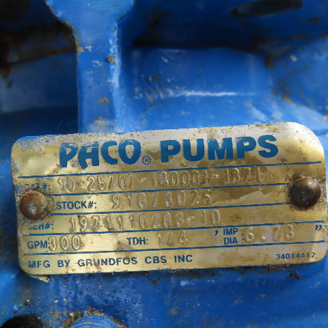 Paco 10-25707-140001-187 Centrifugal Pump 25HP 230/460V 3Ph 300GPM 174TDH Tested