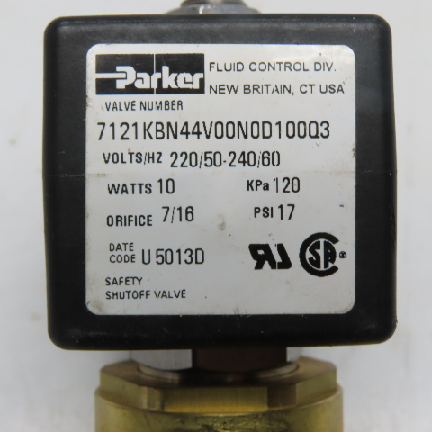 Parker 7121KBN44V00N0D100Q3 1/2" NPT Safety Shutoff Solenoid Valve 240V 10W