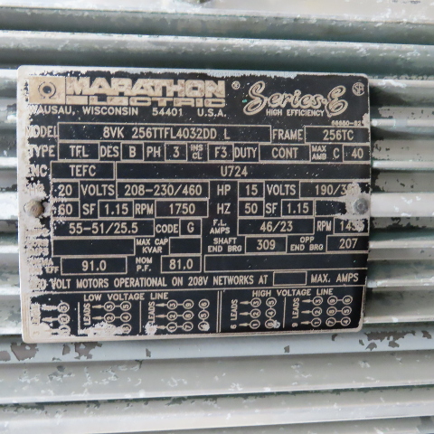 - Motor Brand & Model Number: Marathon 8VK 256TTFL4032DDL
