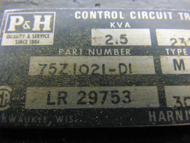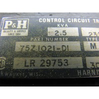 P&H Crane 75Z1021-D1 230/460 Primary 120V Secondary Type M Transformer 2.5 KVA