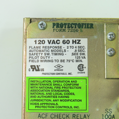 Protection Controls 7256 B Protectofier Combustion Safeguard Control 120VAC