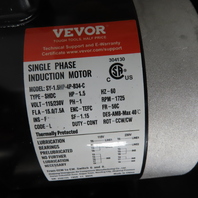- Equipped with Vevor SY-1.5HP-4P-B34-C single phase induction motor