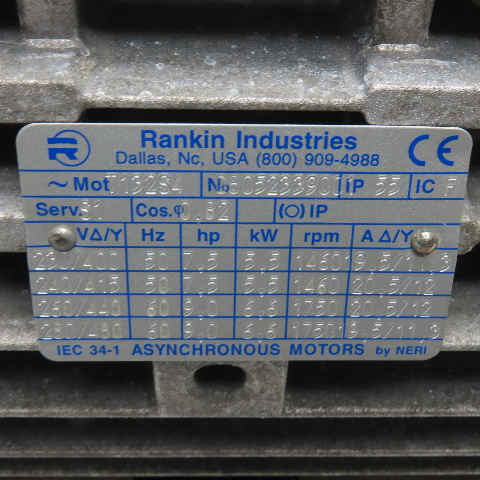 Rankin Industries 132S4 9HP AC Asynchronous Electric Motor 230/460V 3Ph 1750RPM