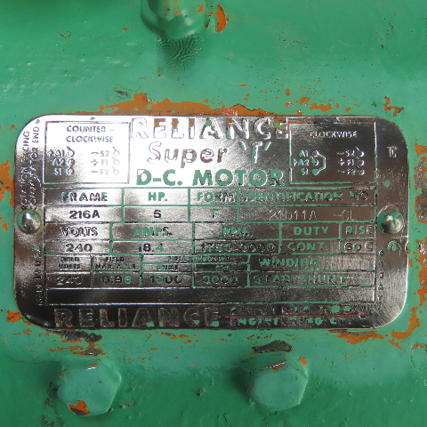 Reliance 21D11A-CL 5HP DC Motor 240V 1750-3000RPM 216A Frame