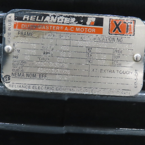 Reliance 75Hp 460V 3Ph 60Hz 1775RPM Duty Master AC Motor 365T Frame