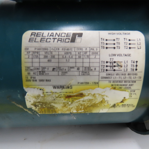 Reliance P14H7208G 2HP Electric Motor 208-230/460V 3Ph 1725RPM W/ Dodge Brake