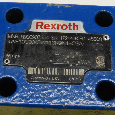 Rexroth 4WE10C33/CW110N9K4 Solenoid Directional Valve 4600psi 110V/120V