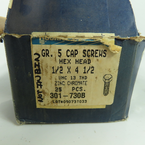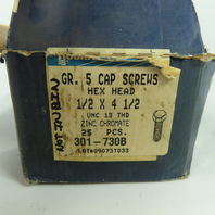 Rockford 1/2"-13x4-1/2" UNC Zinc Chromate Grade 5 Hex Head Cap Screws Lot Of 25