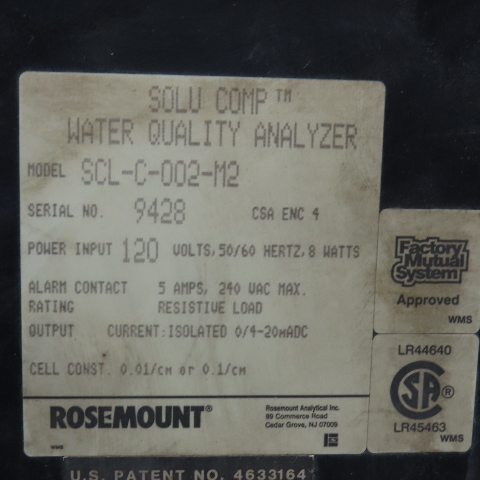 Rosemount Analytical SCL-C-002-M2 Solu Comp Water Quality Analyzer 120V