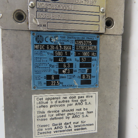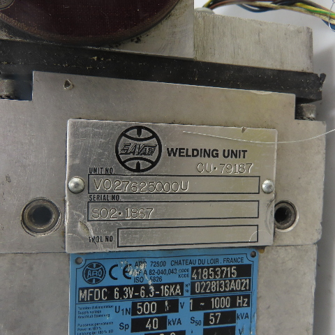 Savair VO27625000U Welding Transformer 6LPM 1Ph 500V W/ Aro MFDC 6.3V-6.3-16KVA
