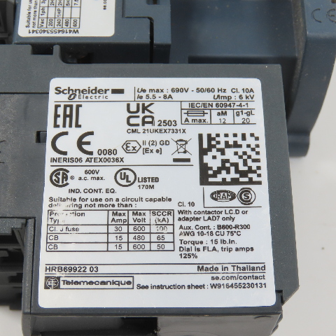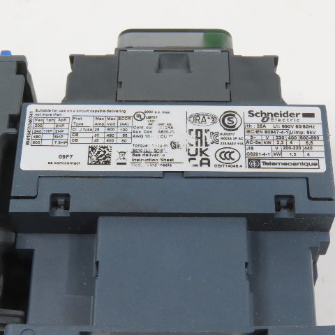 Schneider LC1D09F7 600VAC Contactor 7.5HP 110V Coil W/ LR3D12 Overload 5.5-8.0A
