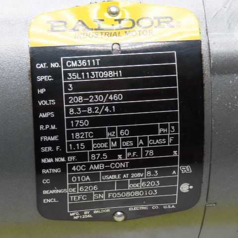 - Motor rated for 208-230/460V, 1750 RPM