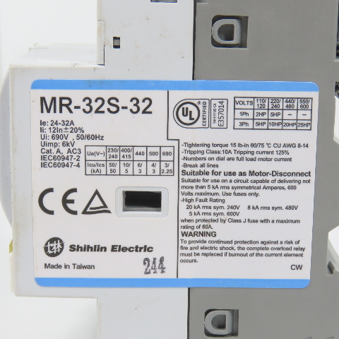 Shihlin MR-32S-32 Motor Protection Circuit Breaker 24-32A 25HP 600V
