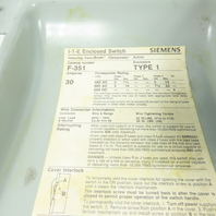 Siemens F351 30A 3-Pole 3Ph Fusible Safety Disconnect Switch 600VAC