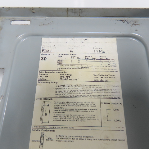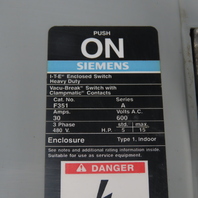 Siemens F351 Ser A 30A 600V 3P Fusible Safety Disconnect Switch 15Hp