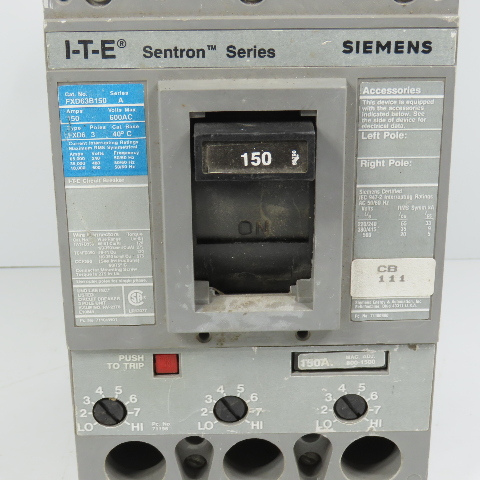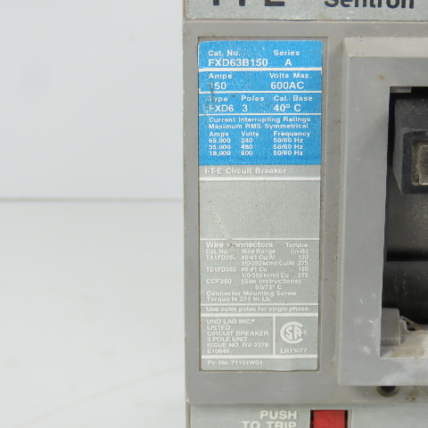 Siemens FXD63B150 Ser A I-T-E Sentron 150A 3-Pole Circuit Breaker 600VAC Max