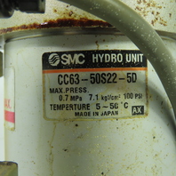 SMC CCVS22-5D CC63-50S22-5D Air Hydro Unit W/ CC Valve 100 PSI