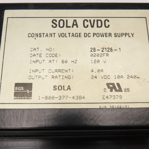 Sola 28-2126-1 Constant Voltage DC Power Supply 120V 24VDC Output