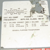 Square D 1S46F 240/120V Pri 1kVa 32/16V Sec 1Ph Transformer