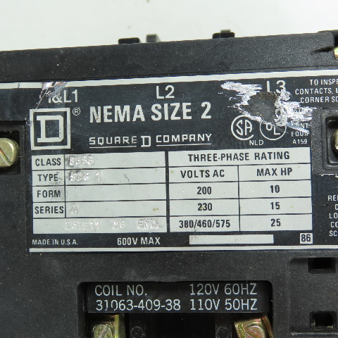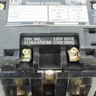 Square D 8536 SDG1 Size 2 Motor Starter 25HP 120V Coil 600V Max W/ Overload B70