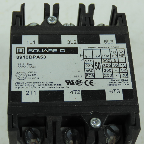 Square D 8910DPA53 65A 3-Pole Definite Purpose Contactor 24V 600V