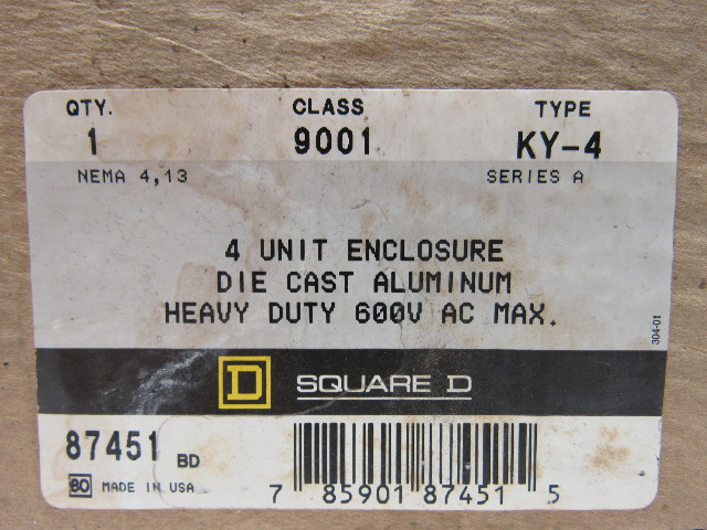 Square D 9001KY-4 30mm 4 unit Pushbutton Control Station Enclosure Aluminum