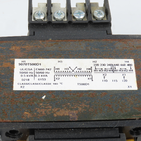 Square D 9070T500D1 0.5kVA Control Transformer Pri 220-480V Sec 110-120V
