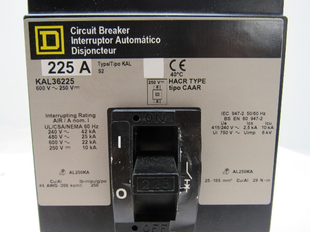 Square D KAL36225 3 Pole 225A 600V Circuit Breaker