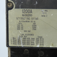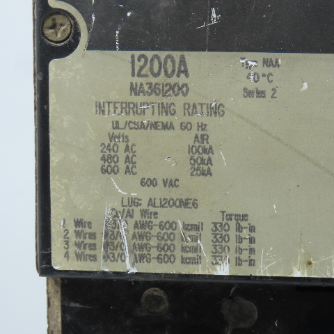 Square D NA361200 1200A 3-Pole I-Line Circuit Breaker 600VAC 3PH 3P